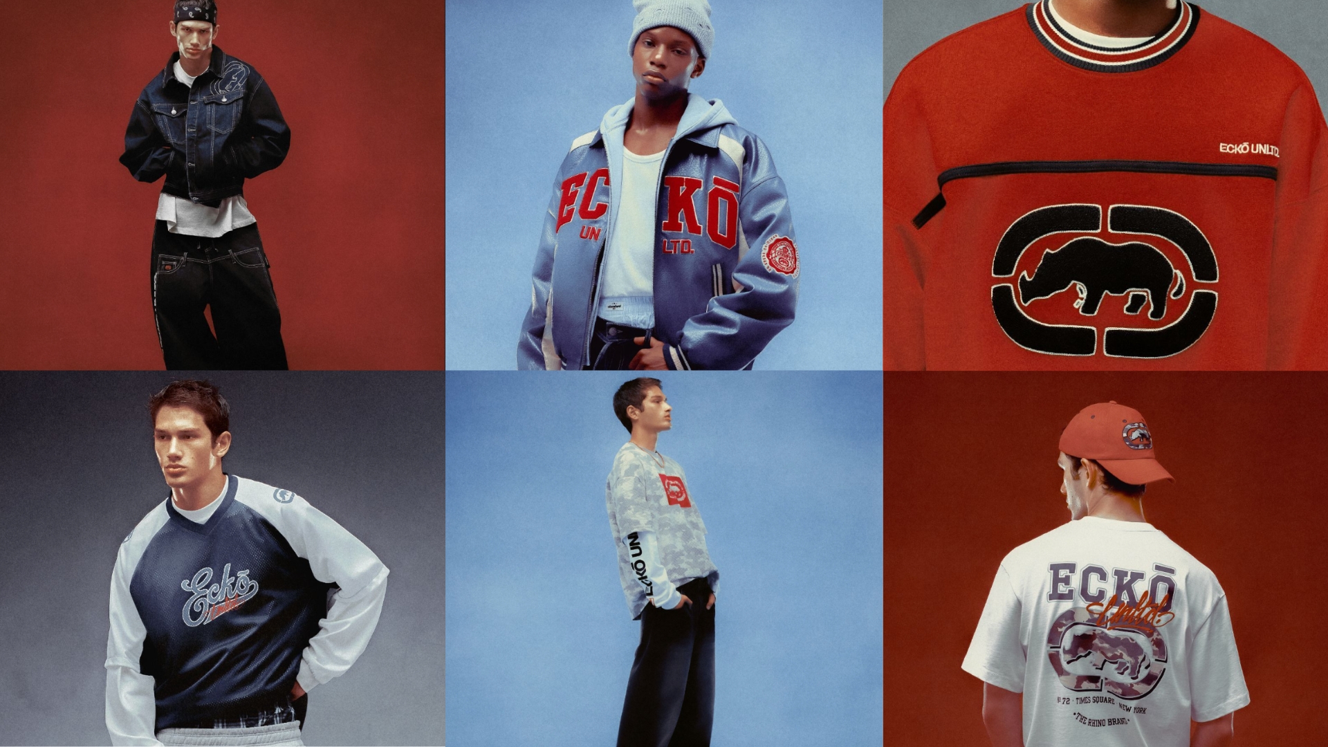 A cápsula inclui jaquetas varsity em couro sintético, sobrecamisas com efeito de veludo cotelê, moletons, peças em algodão, tecidos técnicos e jeans em cortes largos e acabamentos crus, além de peças gráficas com logos reinventados, estampas e designs de alto impacto. A proposta mantém o DNA rebelde da Ecko Unltd, ao mesmo tempo em que eleva o sportswear a uma estética mais refinada.
